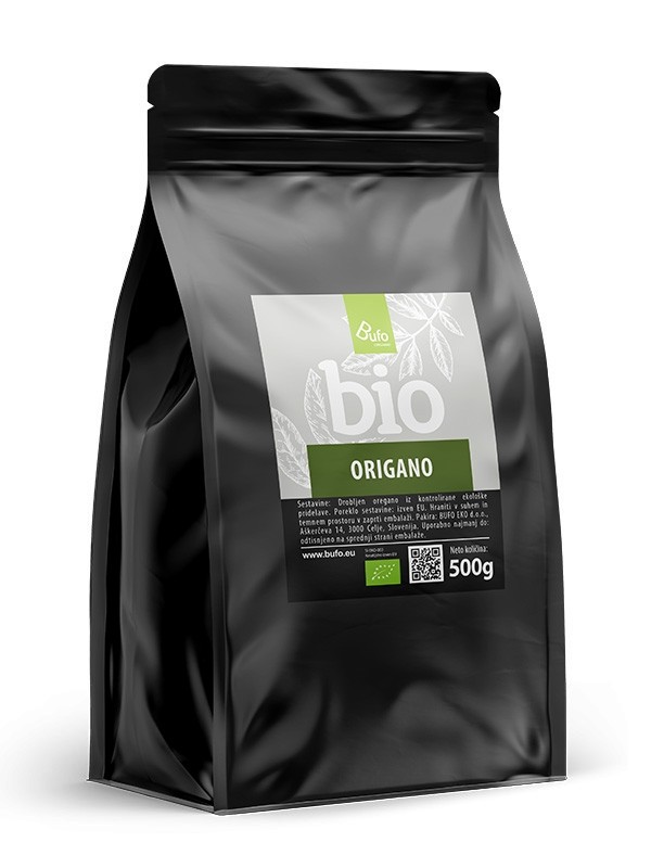 DATI PRINCIPALI:  Origano sbriciolato BUFO ORGANIC da coltivazione biologica controllata. L’origano, o erba della buona mente , è un’erba e una spezia della cucina mediterranea. La pianta aromatica ben nota è una perenne con piccoli fiori scarlatti, che cresce fino a circa mezzo metro di altezza. L’origano prospera in tutti i tipi di terreno ed è adattato a climi più caldi, quindi richiede molta luce e calore. Le foglie di origano si raccolgono due volte all’anno: la prima entro giugno, prima della fioritura, e la seconda nel mese di settembre.