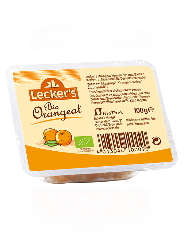 INFORMAZIONI DI BASE: Lecker's è un’azienda con una lunga tradizione che risale al 1935. Il fondatore Konrad Lecker fu uno dei primi a produrre il lievito in polvere a base di cremor tartaro come alternativa al lievito classico. Così Lecker's è diventato un marchio sinonimo di ingredienti indispensabili per la pasticceria e la preparazione di varie delizie. La scorza d’arancia biologica candita è composta dalla buccia candita di un tipo di arancia molto aromatico e spesso. È priva di conservanti, viene prodotta a mano e la macchina di lavorazione aggiunge sciroppo di mais biologico.